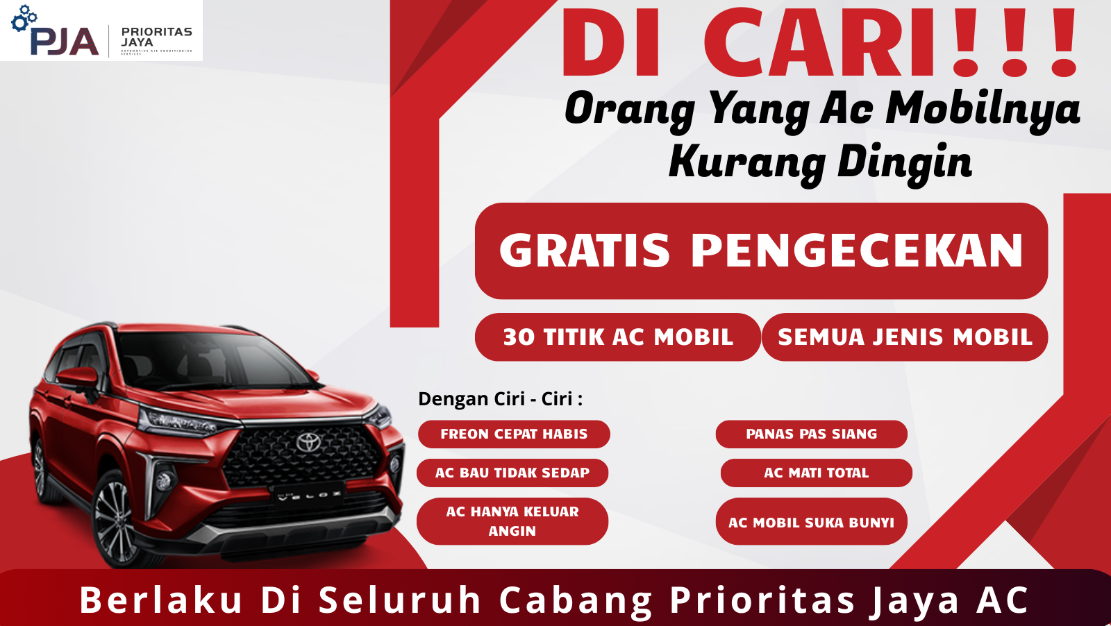 PT. Prioritas Jaya Abadi adalah bengkel spesialis servis dan perbaikan AC mobil yang berlokasi di Cibubur dan Cileungsi, melayani pelanggan dari berbagai wilayah seperti Ciracas, Kampung Rambutan, Kelapa Dua Wetan, Munjul, Bambu Apus, Cilangkap, Ceger, Pondok Ranggon, hingga Lubang Buaya.